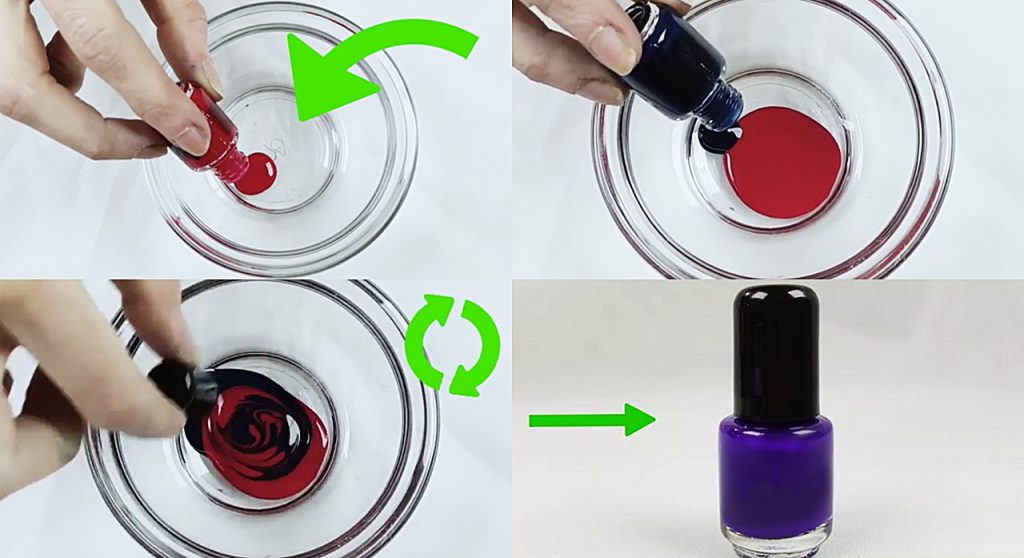 Lucky is convenient to mix on a small palette, adding a few drops of each color. Then they need to mix to a uniform consistency using a toothpick. By adding a bit more dark or light varnish, you can align the color to the desired shade. Before applying on the nails a new color should be checked on a test palette.