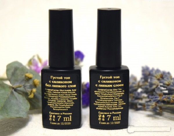 - High-quality packaging from opaque glass. Its volume should not be large, otherwise the gel will lose its properties before it remains on the bottom. Images and text on the bottle should be clear. It is convenient when the color on the lid of the bottle exactly matches the final finish.