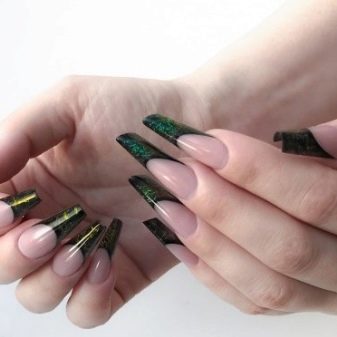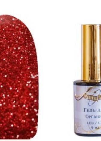 - Glitter. The composition of these gel polishes include small glitter, which gives the nails an unsurpassed effect.