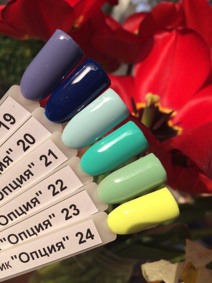 The colored gel varnishes of TM “Option” are represented by a rather wide palette of shades and colors.
