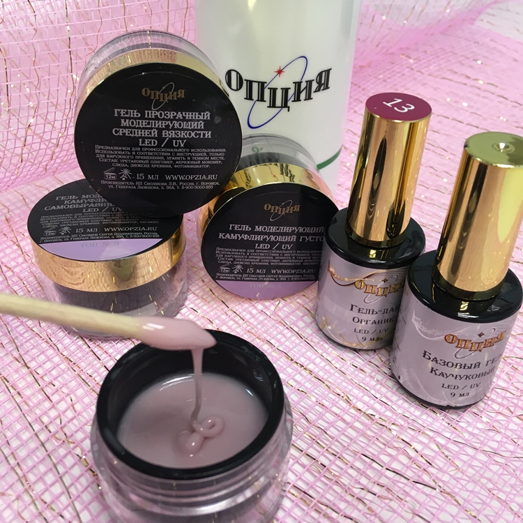 TM "Option" is produced in Russia. In 2015, the Voronezh company began a detailed study of products for modeling and design of nails of famous European and American companies. As a result, a product line was created, not inferior to foreign counterparts.
