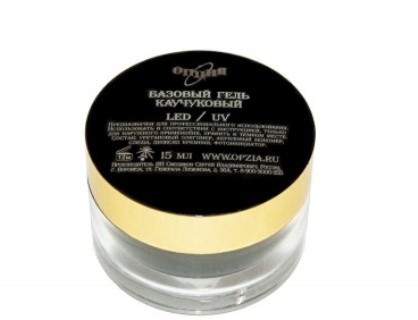 Any design with gel polishes begins with the application of the base. This layer allows you to ensure good adhesion of pigment compositions with the plate, at the same time protects the nail itself from staining. In TM "Option" is represented by a rubber base layer in bottles with a brush and without.