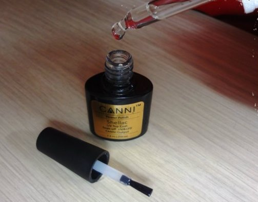 - Top coating or colorless varnish. The quality does not suffer much, but the color will become less saturated. If shellac is only bought and thick and there is no desire to add various means to it, then you can use a little trick. Pour the required amount of gel polish onto a piece of foil and add a few drops of topcoat to them, then mix to the desired consistency. The advantage of this method is that the result is immediately visible.