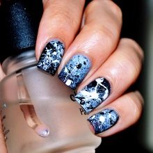 It is in black and white color that the imitation of the marble pattern on the nails is especially gorgeous. In the technique of marble stains, you can draw all the nails, select one or two. Both white and black can act as a base.