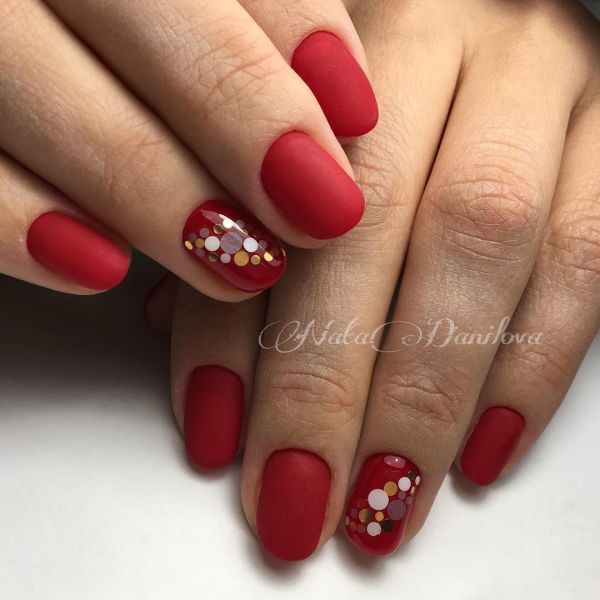 A stunning result is obtained if you cover your nails in a rich deep red frame with a matte finish.