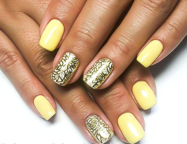 Designers offer a considerable number of options on how to make a manicure with a yellow gel polish. Usually a combination of several colors is used for this, for example: