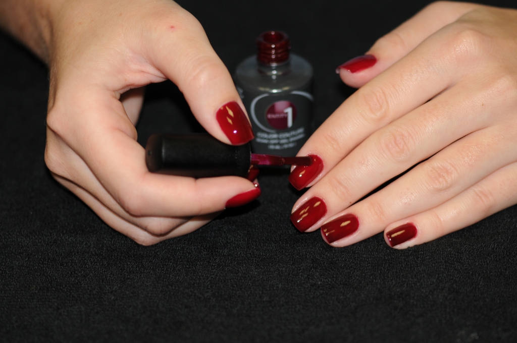 - We cover the nails with one layer of colored lacquer, carefully working on the end of the nail.