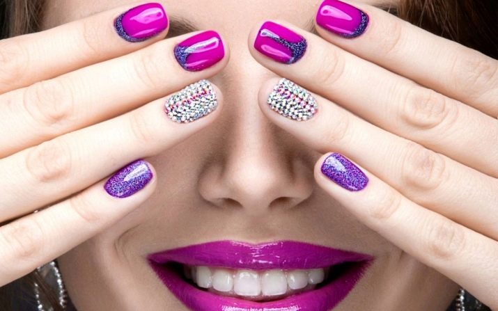 It is always very bright and stylish looking nail decoration varnishes with a metallic tint. If the nail is covered with this gel polish entirely, then it should not be overloaded with additional accessories in the form of rhinestones, broths or appliqués. Looks very nice nail design, in which metallic is used as a painting on the main floor. Most often used for these purposes lacquer gold and silver hues. They decorate the tips of the nails or the area in the growth zone. Such accents allow you to give your nails a luxurious and noble look.
