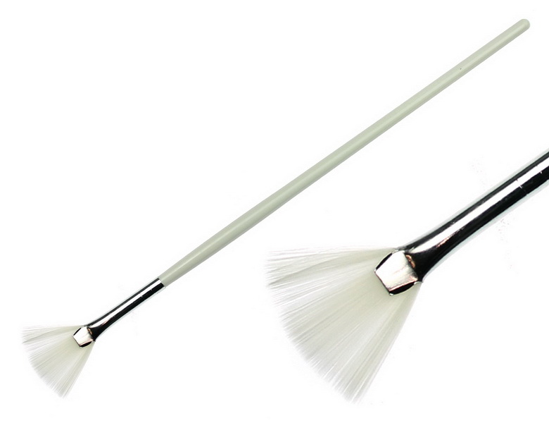 - Fan. A very wide and flat brush in the form of a fan is necessary to align color transitions, to design abstract or landscape images, to evenly distribute the decor in the form of sparkles or powder.