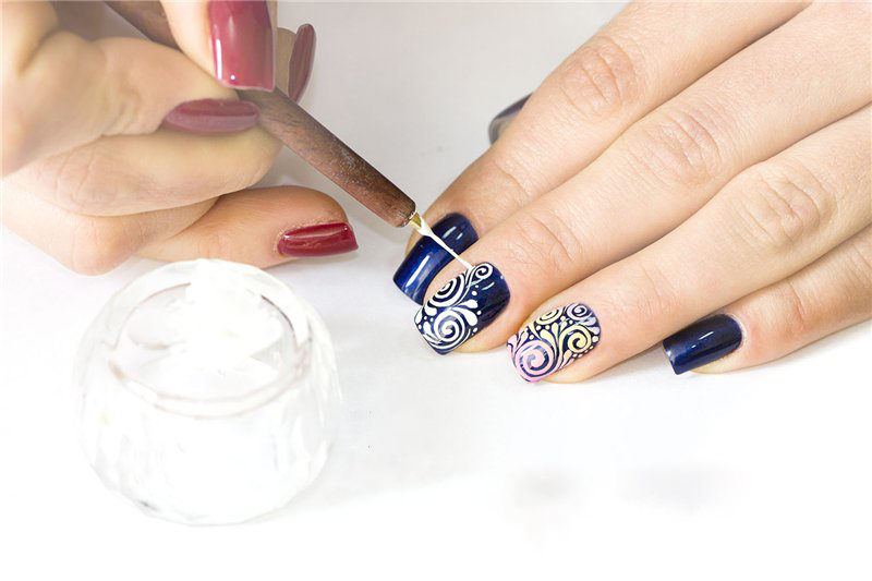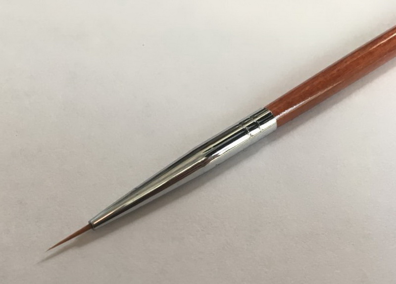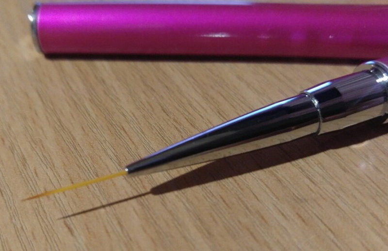 - "Hair". Professional name - liner. The brush has a cylindrical shape. It is very thin, the length reaches two centimeters. As a rule, 2 liners are needed: a long one - for drawing lines, a short one - for curls. In contrast to the point, the pile of this brush should be dipped completely into the varnish. The tool is indispensable for geometric patterns, floral designs and monograms.