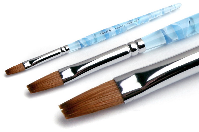 - Normal flat. The brush has a rectangular shape and is designed to produce gradient transitions, applying glitter, acrylic powder, rub-in and other decorative elements. With certain skills, she draws various patterns in the Gzhel style or medium-sized flower ornaments.