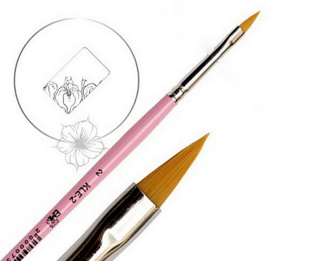 - Dagger-shaped. The shape is similar to a flat brush, but its tip is cut at an angle of 45 degrees. It is convenient for drawing small or thin drawings. Bevel brush is used for writing hieroglyphs and other elements of oriental painting. Volumetric figures are also included in the zone of its capabilities. It is convenient for her to display "smiles" for french and moon manicure.