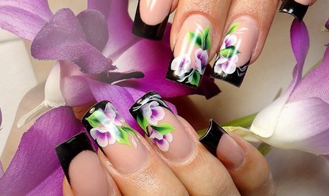 Acrylic paints are considered another recognized manicure material. They are easy to use, better lie on the surface, have a wide color palette, do not crack, do not spread, dry quickly. It is very easy to work with them, they do not need to be diluted with water. The only drawback is that they are quickly washed away, so they must be covered with a fixing layer of the top.
