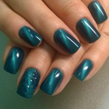 Design using emerald blue shade is perfect for everyday life. Manicure will complement any image, make the handles brighter. Also, these shades are perfect for girls with blue or green eyes.