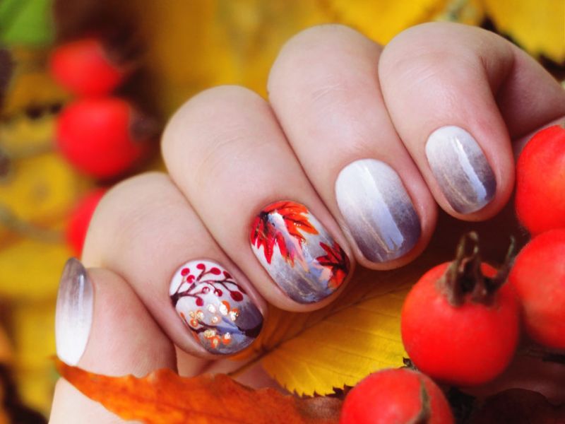 Despite the fact that autumn is a golden time, and not a time for despondency, one should not abuse only “autumn” paints in manicure. Of course, you can decorate the nails with gold or orange patterns, but everything should be in moderation. Some other years or two ago in the autumn trend there was an orange manicure or an orange service jacket, decorated with the same orange leaf of maple. Despite the fact that it is fun and bright, this trend did not linger in the manicure fashion.
