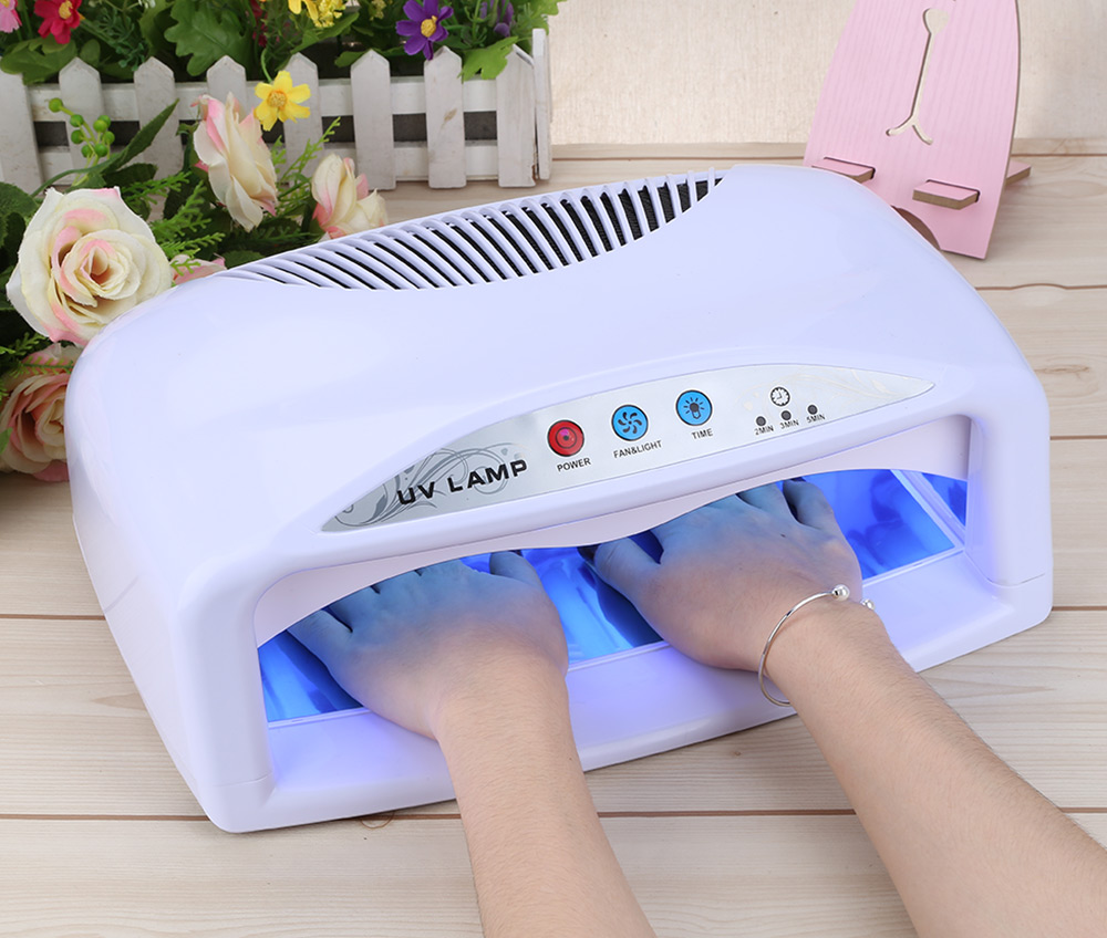 Initially, the base is applied to the nails. It is responsible for the strength of adhesion of the coating to the surface of the nail plate. After that, the fingers are well dried in the ultraviolet lamp. Then you can apply colored shellac.