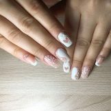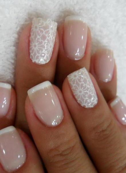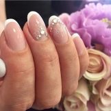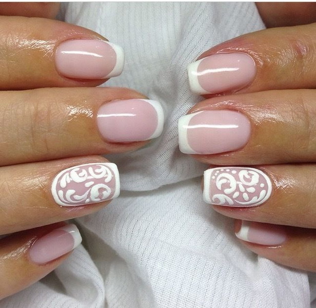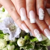 To create a wedding manicure at home fits well as it can be done on any shape and length of the plates. In addition, this design is perfectly combined with outfits of different styles. To make a French manicure yourself, you need to perform the following steps in stages.