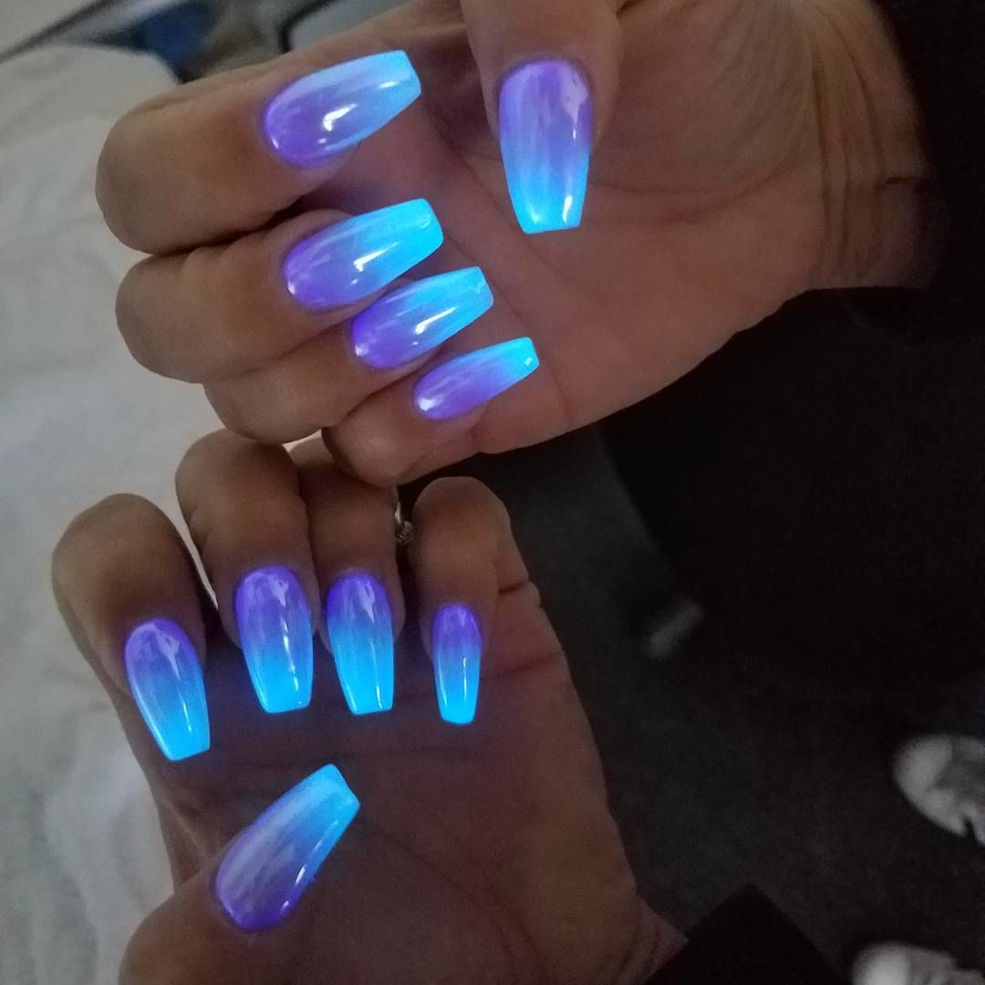 The design, glowing in the dark with dusting - is a real hit of the season. In ordinary life, it looks like an ordinary manicure, but the pigments allow it to shine luxuriously at nightfall. Especially original looks shades of plum and cherry in this embodiment.