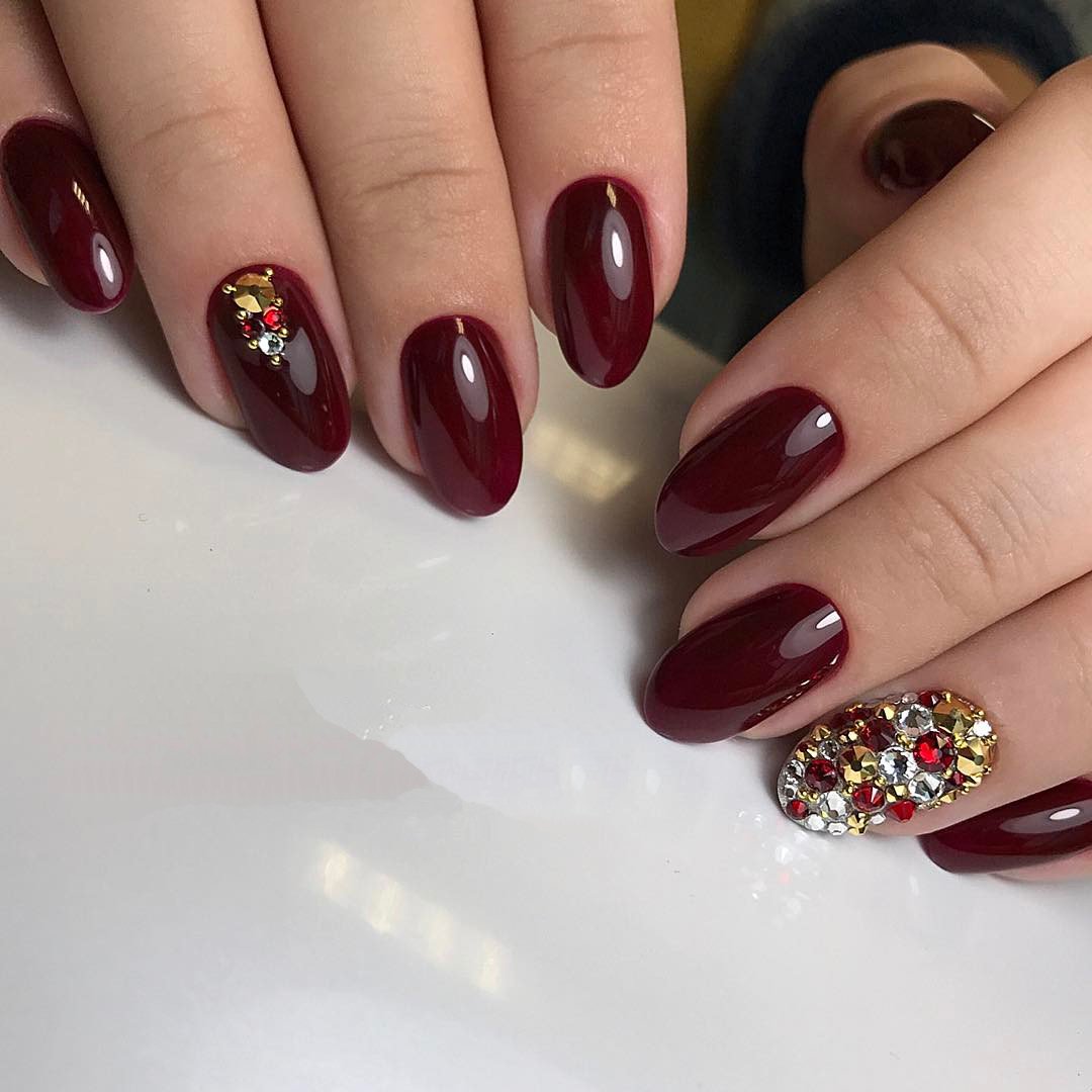 Cherry varnish, decorated with rhinestones, is unlikely to be appropriate in the office, but at a party it will be noticed immediately. It will be strange to look black manicure and clothing in a romantic style.