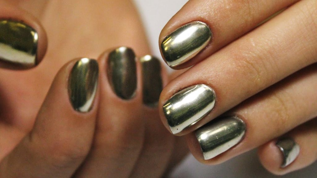 Modern manicure with a mirror surface performed using several types of coatings: