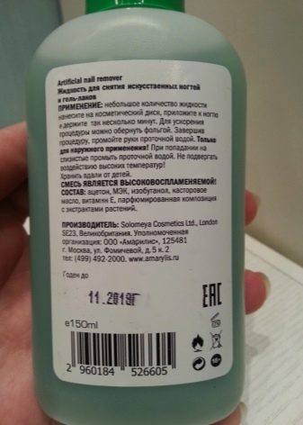 The composition of the tool includes acetone, which causes damage to the nails, so after using the liquid, you should carry out the grooming procedures - cosmetic baths and special rubbing that allow the nails to maintain strength and health.