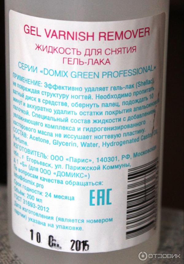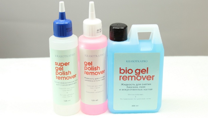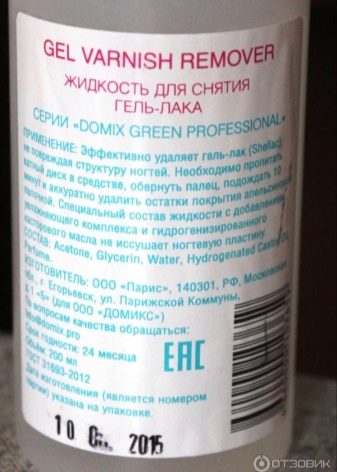 - "Domix GEL Varnish Remover" - this remuver has an optimally balanced composition of the solvents used, therefore it does not harm the nails. The presence of castor oil additionally cares for the stratum corneum and gives a delicate flavor to the composition.