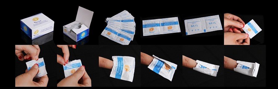 The real revolution in the nail industry was the creation of napkins, which are used for cleansing from gel polish. These are quite practical devices in the form of pockets, well impregnated with a special tool. You only need to put them on each nail and fix them at the edges. They replace both the remuver itself and the film with foil. Of course, the cost of the product is quite high, but considering that this is “2 in 1”, then ultimately its purchase turns into savings.