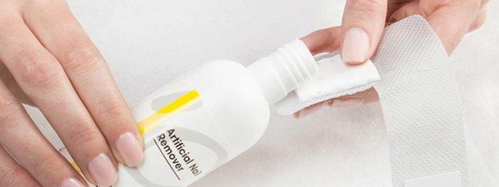 The structure of the remover for removing varnish-gel, as a rule, includes acetone. It usually dissolves the solid layer of varnish fairly quickly, but this substance can harm the top layer of the nail plate - it provokes its delamination, softening and increases fragility.