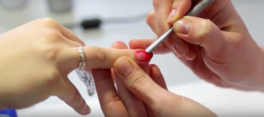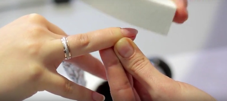 - The preparatory stage is identical: hands need to be washed, wiped and applied on the skin of the fingers around the nail plates softening cream.