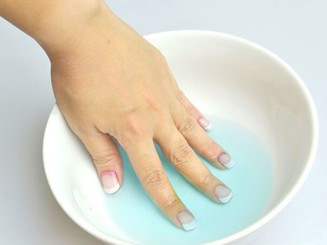 - Immerse the upper phalanges of the fingers in the liquid and wait 10-15 minutes.