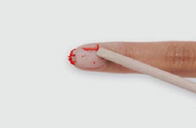 - Next, the patch can be removed. Softened in solution, shellac is removed with an orange stick.
