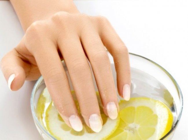- Lemon juice is very useful for nail plates. It is rich in vitamin C and has a mild whitening, regenerating and accelerating the growth of the nails.To soften the acids contained in the juice of lemon, the tool is used in a mixture with glycerin and honey. For the preparation of a therapeutic composition of the need to mix the components in the following proportions: 100 g glycerin, 1 tbsp. spoon of honey, 2 tbsp. spoons of fresh juice. To make the procedure comfortable, it is better to warm up the mixture to a warm state. The tool is used in the form of trays. Fingers should be immersed in a warm mixture for 15-20 minutes.