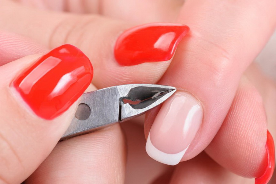 - Using nail scissors or scissors (tweezers), cut off excess skin. At the same time, movements should be made in the direction of the cut (in any case, not up). If possible, try not to cut off in parts, and a solid strip of skin. This will reduce the marriage in the work, which is one of the causes of gel polish flowing over the cuticle.