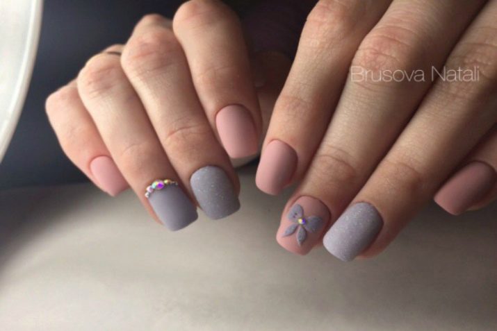 Masters also prefer to use matte finishes in the decoration of nails. But the heterogeneous consistency of the product and the difficulty of painting the cuticular area causes some difficulties in the work.