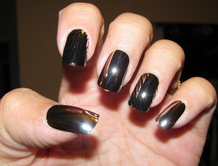 - Using a black shade or other highly pigmented gel polish, it is necessary to apply it in a very thin layer, lightly brushing it on the nail plate.