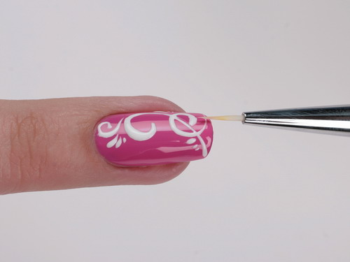 - A brush used to distribute the decorative means to the marigold may not be suitable for application close to the cuticle. It is recommended to use a thin brush, characterized by a high degree of elasticity.