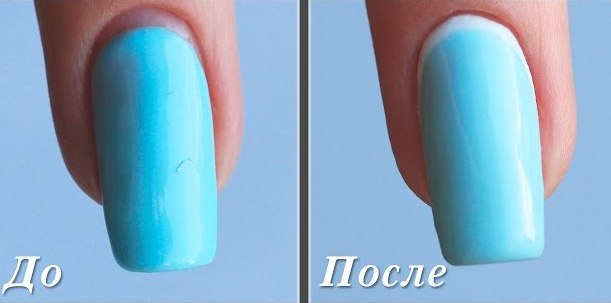 - If you still have small wrinkles on the nail, you need to cover it with a glossy top. The top should be applied very quickly and immediately fix it under the lamp for a few seconds, after which you need to wait until the surface is completely polymerized.