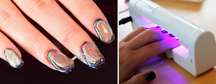 - Apply 2 thin layers of decorative gel coat instead of one thick. In this way, you can dry the gel polish gradually, and even a not very powerful device for drying can cope with this task.