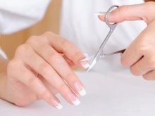 Consider how to make a correction without removing the varnish. Initially removed cuticle. Hands should be disinfected with an antiseptic solution. Gently remove the cuticle with an orange stick, cut off the excess skin with nippers. The length of the nail plate should be the same.