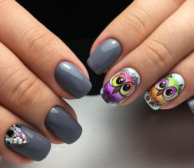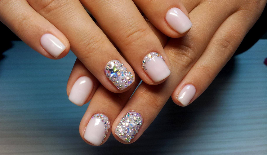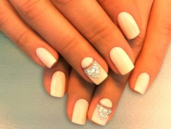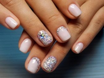 - Rhinestones. Rhinestones add grace and elegance. They have long been loved by all the girls. Here the main thing is not to overdo it. It is not necessary to decorate all the nails with numerous sparkling stones. It will look tasteless. It is better to focus on one finger, gently highlighting the image.