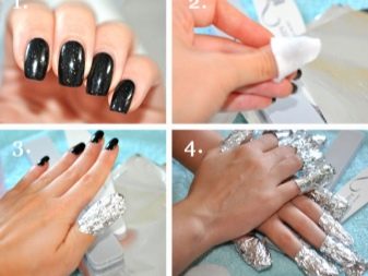 Now be sure to remove the glossy finish with a nail file. Take it and gently move the surface of the nail without pressing hard. After that, take the discs and wet them in a prepared tool, which is designed to remove varnish. Carefully apply the disks to the nail plate and wrap each finger with foil.