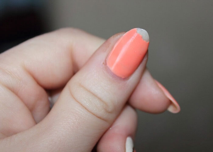 If the nail is broken, then the surest way would be to remove the coating and adjust the nail plate. Then you can re-cover the surface with shellac of the desired shade. If you have exfoliated nail plates, then they should be strengthened with special means.
