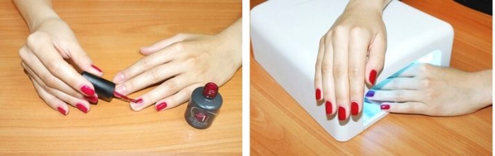 Formaldehydes, camphor, toluene should not be part of the funds that you will use. Before you put your hands in the UV lamp, do not forget to treat them with a special cream. This is especially important during pregnancy. It should be remembered that shellac has a peculiar smell. It can cause discomfort. In this case, it is important to have quick access to the air. Well, if there is a window or door next.