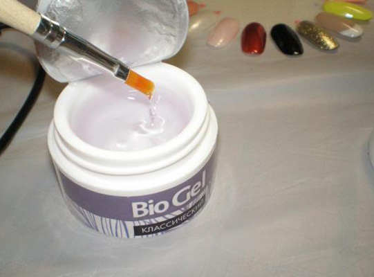 Strengthening of natural nails is definitely best done with biogel. This material is safe, odorless. It can even be used by expectant or lactating mothers. Biogel can be single- or three-phase, like gel varnish. The technique of applying is completely the same as when using a conventional gel.