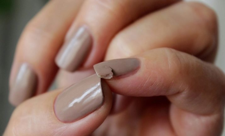 Manicure with the use of shellac can only be done on healthy nails. If the plate is unhealthy, then under the durable coating it will become even more depleted, brittle and fragile. In this case, the nail is likely to break along with the new manicure.