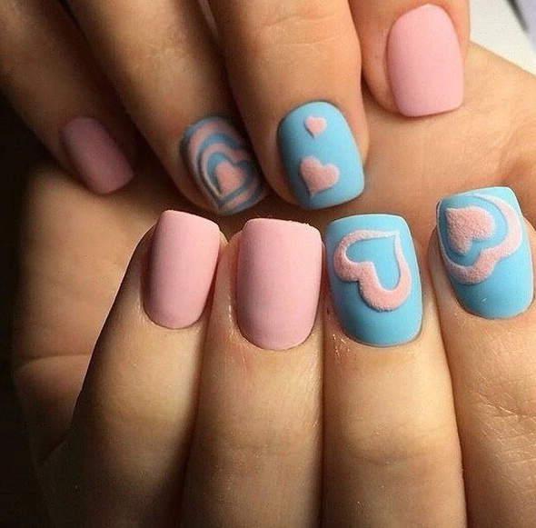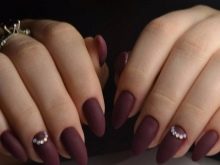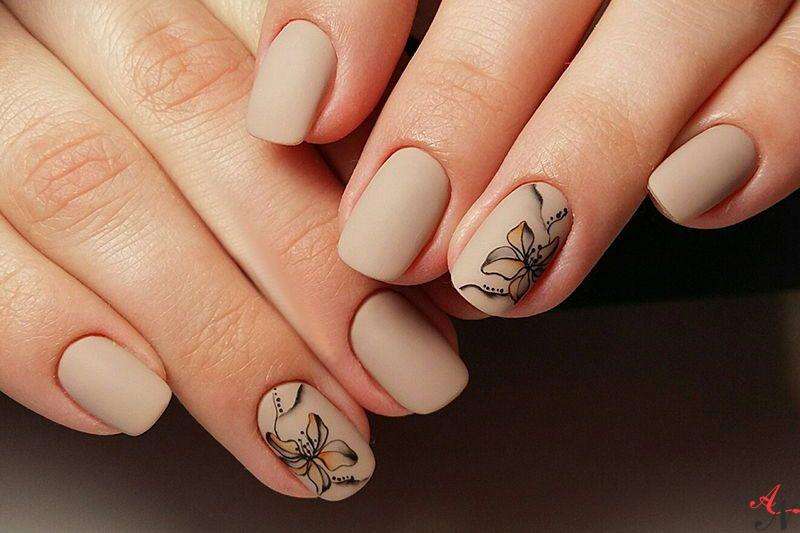 Matte manicure is very popular, and gel varnishes of various shades are usually used and they combine this coating with other techniques. Matte color looks great on dark shades, as well as harmonious on nude and light beige.