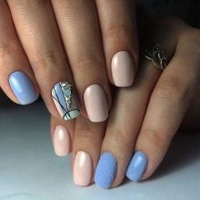 On the elongated nails, you can combine both of these types of nail coating. Such a manicure will distinguish its owner from the crowd in any situation.