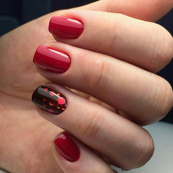 Agree, red lacquer with rhinestones will not be entirely appropriate in a company where a strict dress code is dictated, and the nude color coating will look too easy at a disco or a party.