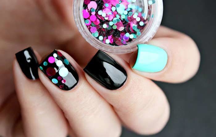 Techniques with a decor that make the cover extraordinary and always attract attention are very common. In this case, one or two nails put pebbles, beads or rhinestones.