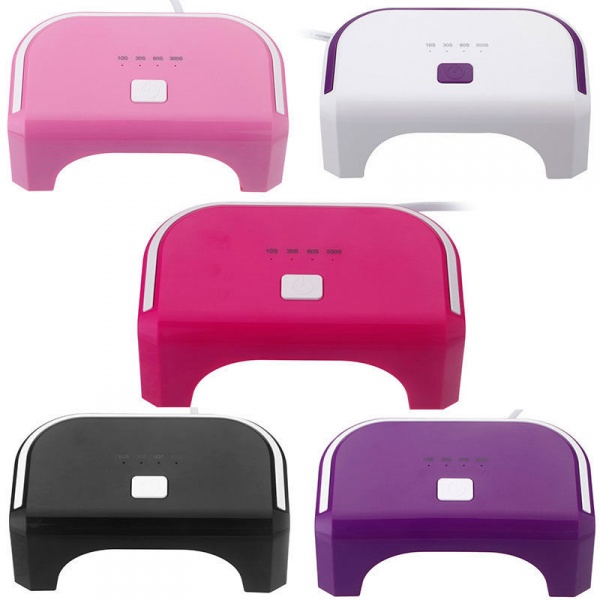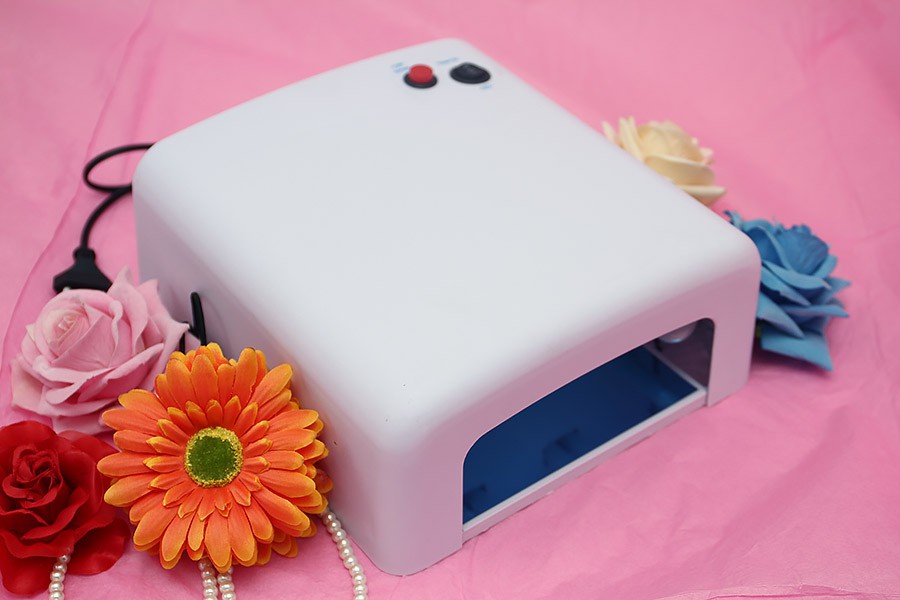 - Ultraviolet lamp. The main advantage of this device is low cost, such lamps afford most of our compatriots. The power of such a device is 9-54 Watts, while the smaller this parameter, the slower the polymerization of the coating. In some cases, such a lamp is additionally equipped with a motion sensor, a fan and a timer. If you are just taking the first steps in the nail design, then it will be enough to get a 36 W device. This gadget is optimal for home manicure, because it well polymerizes shellac of any density.